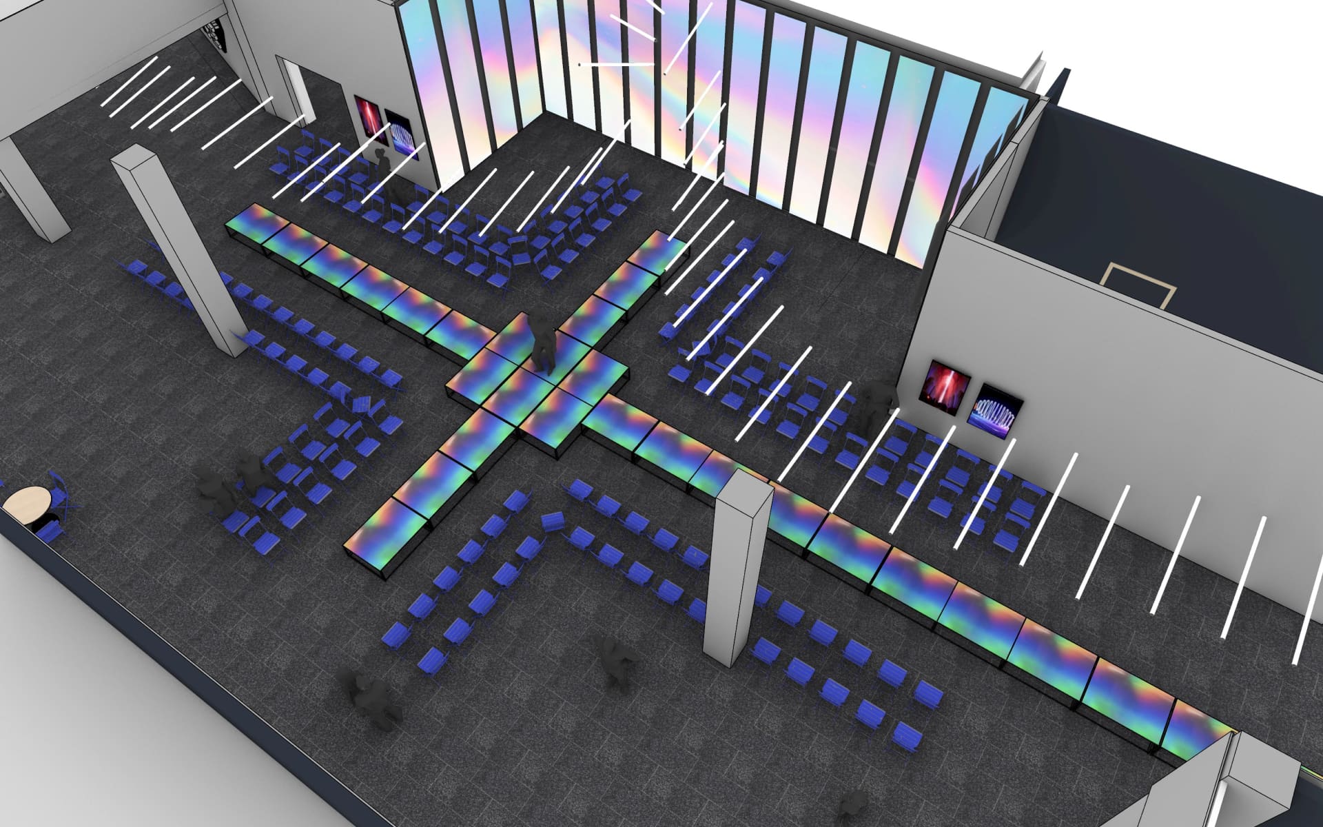 Úchvatný prostor o 300 m² se hodí na večírky, eventy, konference nebo přednášky. Díky imerzivní 360stupňové projekci ho náš tým dokáže proměnit v cokoliv budete chtít.