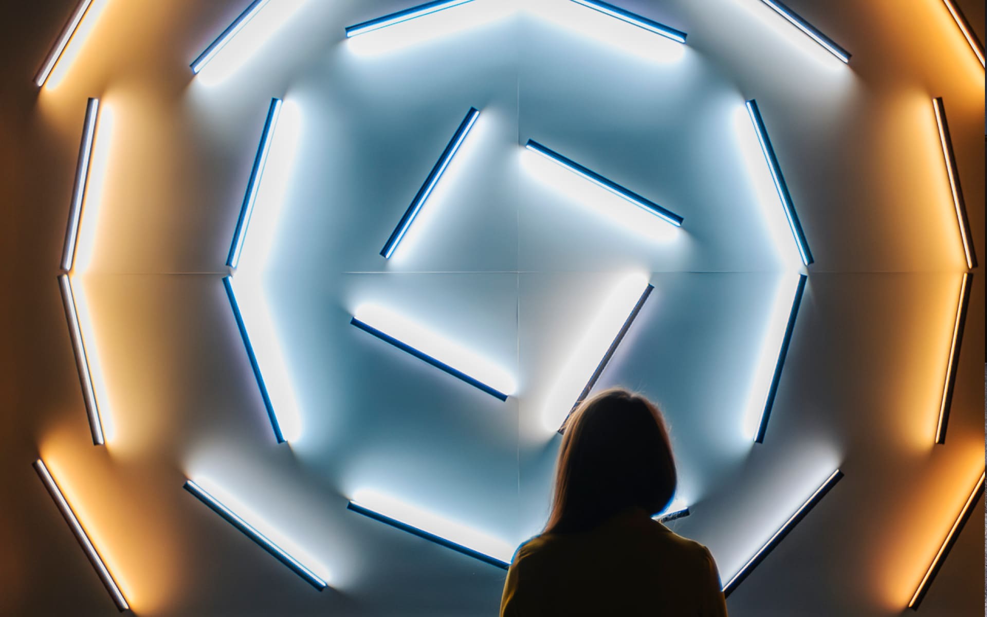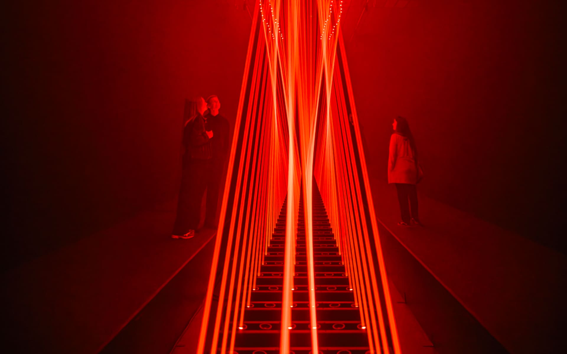 Shohei Fujimoto, japonský umělec a designér, se specializuje na práce se světlem a nehmotnou architekturou. V díle intangible #form používá laserové paprsky k vytváření jemných linií a tvarů, které existují jen díky světlu a vzduchu. Nejde o objekty, které by bylo možné uchopit – prostor tu vzniká pouze v naší mysli. Dílo funguje jako zpomalená vizualizace myšlenkových procesů, kterou můžeme sledovat v reálném čase.